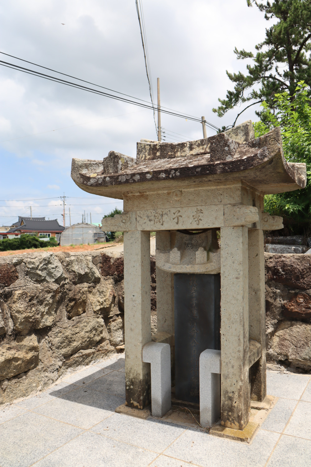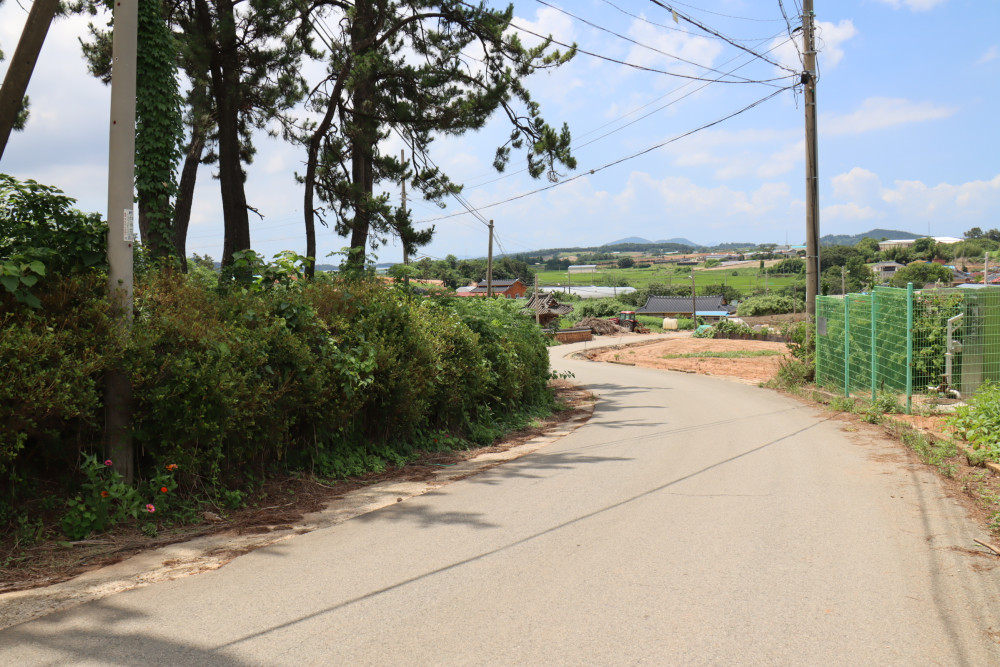 마을 앞 서당터 옆에는 수령이 수백 년 된 아름드리 당산나무 두 그루가 있었는데, 여러 해 전에 태풍으로 쓰러져 죽었지만, 다시 같은 자리에 자라난 두 그루의 당산나무가 그대로 자라고 있어서 신비로움을 전해주고 있다고 한다. 당산나무 아래에는 예전에 바닷물이 들어왔던 곳인데, 그곳에서 지하수를 파다가 배를 고치던 ‘구지(배못)’를 여러 개 발견하기도 하였다. 이처럼 바닷물이 들어오던 이 자리는 주민들이 쌀을 실어 나르거나 목포로 가는 배를 띄웠던 포구였다. 마을 앞의 들판은 비석거리의 주인공 서인섭 씨가 막은 간척지이다.
