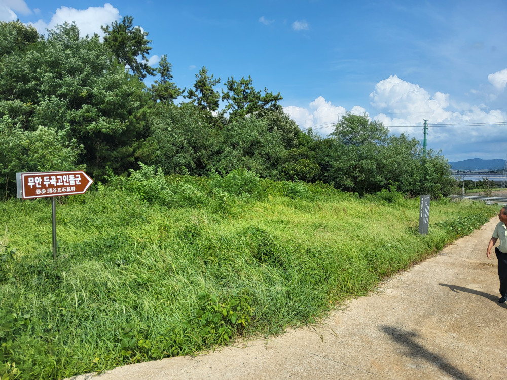 마을 옆을 지나고 있는 압해-운남 간 도로공사를 할 때 전남문화재연구원에서 「두곡」마을 구간을 문화재지표 조사하였다. 2009년부터 2010년까지 조사한 바에 따르면, 청동기시대의 지석묘와 석곽묘가 나왔으며 삼국시대의 고분, 토광묘, 옹관묘 등을 발굴하였다. 이런 자료들을 모아 <두곡마을 고인돌군>이라 해서 길옆에 부지를 마련하여 전시하고 있다.