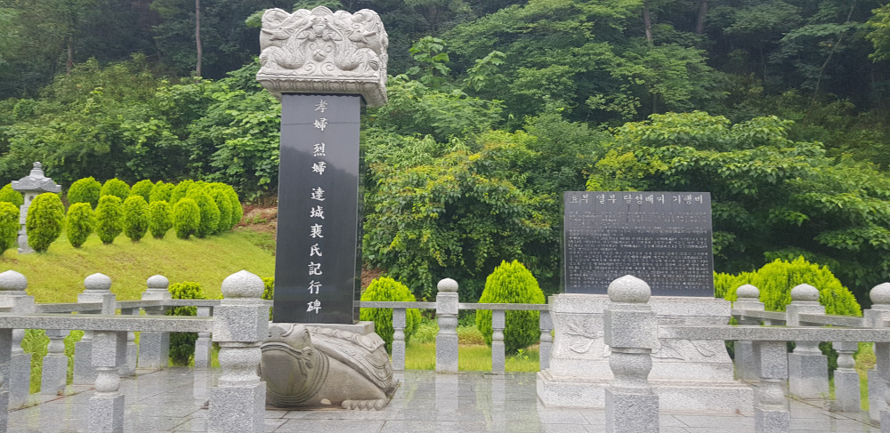 마을 입구에 1987년에 세운 효열부달성배씨기행비가 서있다.