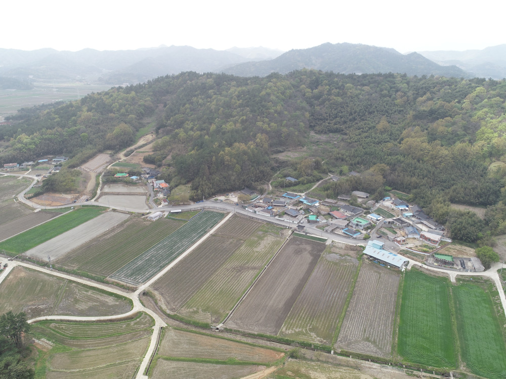 배뫼 마을은 천하봉을 주산으로 하고 신선봉과 깃대봉으로 둘러싸여 있다.