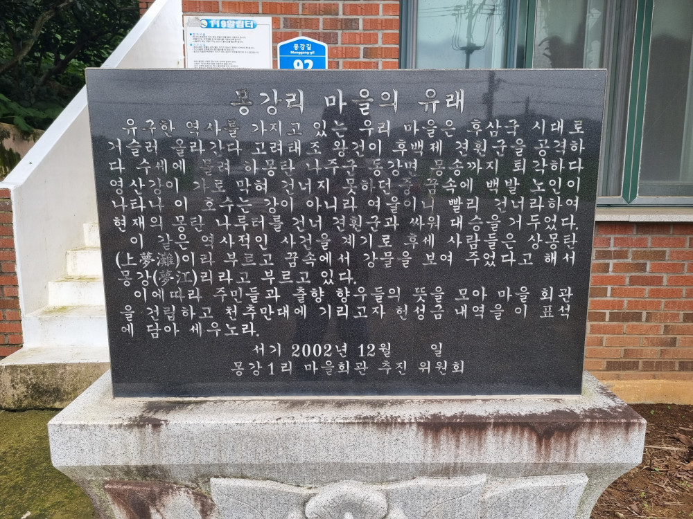 夢江里는 후삼국 시대 새로운 왕조 탄생의 전환점이 되었던 왕건과 견훤의 영산강 싸움에서 꿈 속의 선몽으로 왕건이 승리를 했다는 전설을 안고 있는 지역이다.