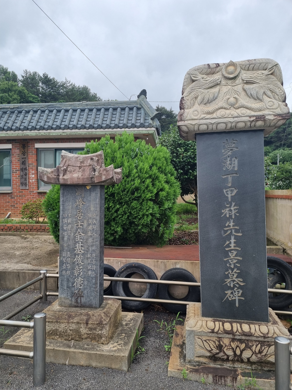 마을회관 앞에는 1945년에 세운 김기준창덕비와 1988년에 세운 정갑조경모비가 서있다.