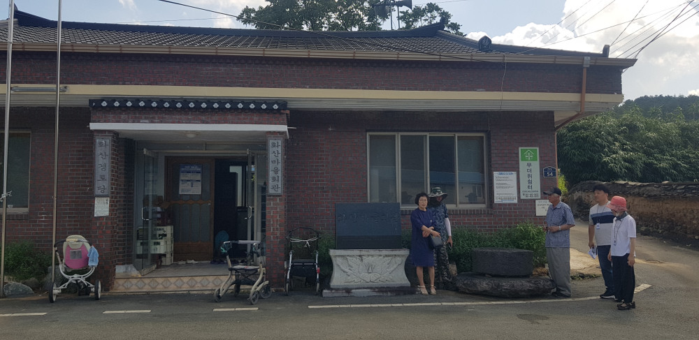 마을회관이 있는 자리는 방앗간으로 사용했던 자리다. 지금도 당시의 흔적인 연자방아가 회관 앞에 놓여있다.