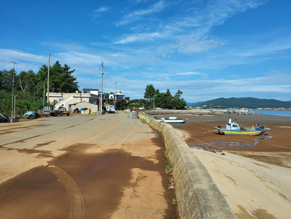 원래 이 마을은 하루에 두 차례씩 썰물일 때 육지와 연결되는 섬이었다. 물이 들 때는 마을이 섬으로 변하여 영해도라고도 하였다. 육지와 연결된 것은 서울 사는 이창손이라는 사람이 이 마을과 대박산 마을을 연결하는 사업을 했으나 완성을 시키지 못하고 1970년대에 구일산업에서 완성시켜 육지가 되었다.