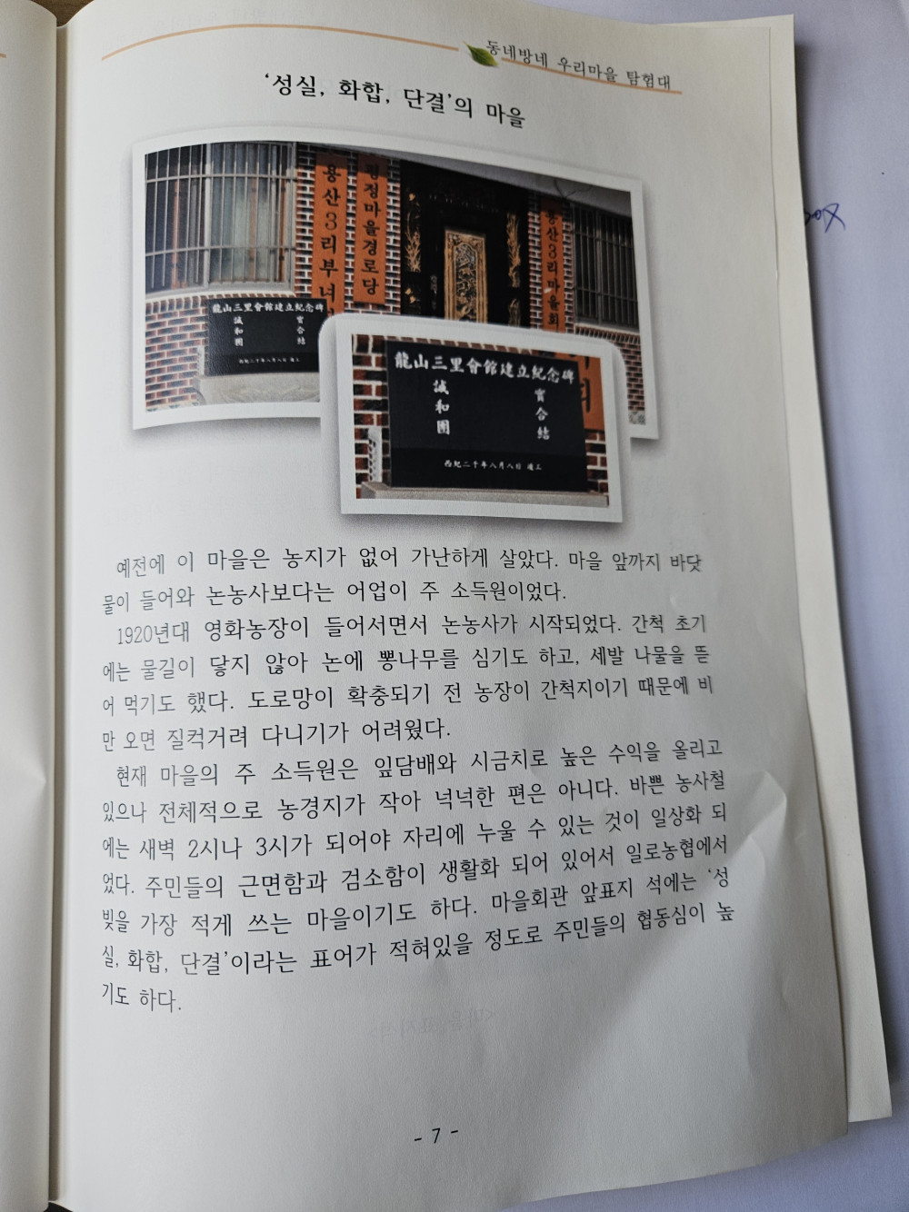 마을 성격(주업/주민의 삶)