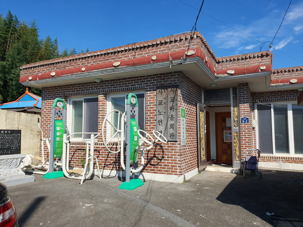마을 왼쪽 가장자리에는 낛시가끔이라는 지명이 있다. 잔등 너머 지석묘 옆을 말한다. 옆으로는 잘 자란 소나무들이마을의 해풍을 막아주는 방풍림처럼 여러 그루 자라고 있었다. 개굴이라는 지명이있다. 명산 가는 철도가 가는 굴을 말한다. 지형이 개꼬리 같다는 말도 있고 철도가 계속 나가다가 굴이 하나 있었는데 굴의 크기가 어중간해서 부르는 이름이라고도 했다. 그 옆으로 몽탄 당호리로 넘어가는 재를 개골재라 한다. 마을회관 앞에는 사교마을 회관기가 있으며 마을 중간에 통샘이라 부르는 공동샘이 있었다