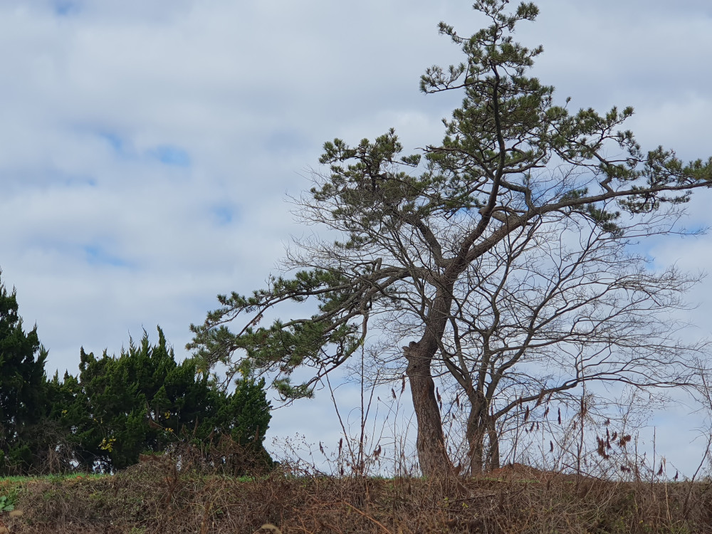 소나무(전나무), 당산나무가 많이 죽어 작년에 이팝나무 20여주를 심었다.