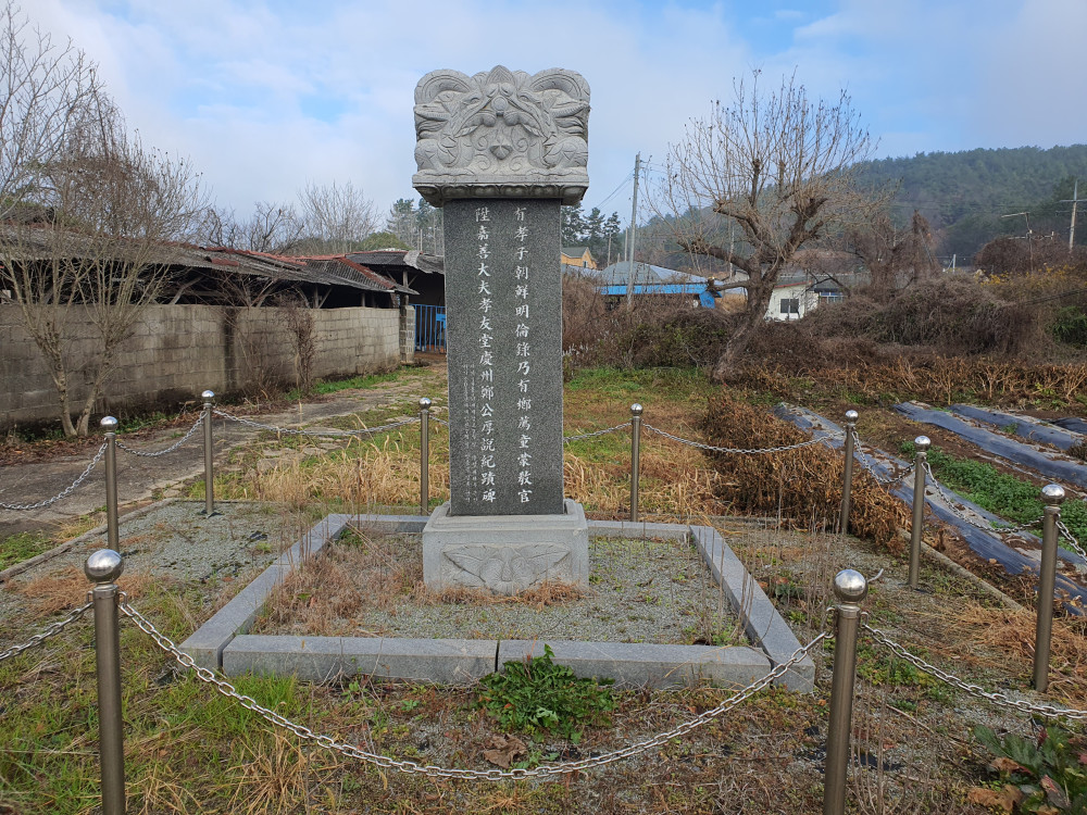 마을에 2012년에 세운 ‘효우당정공기적비’와2003년에 세운 ‘후헌정달종선행추모비’가 있다