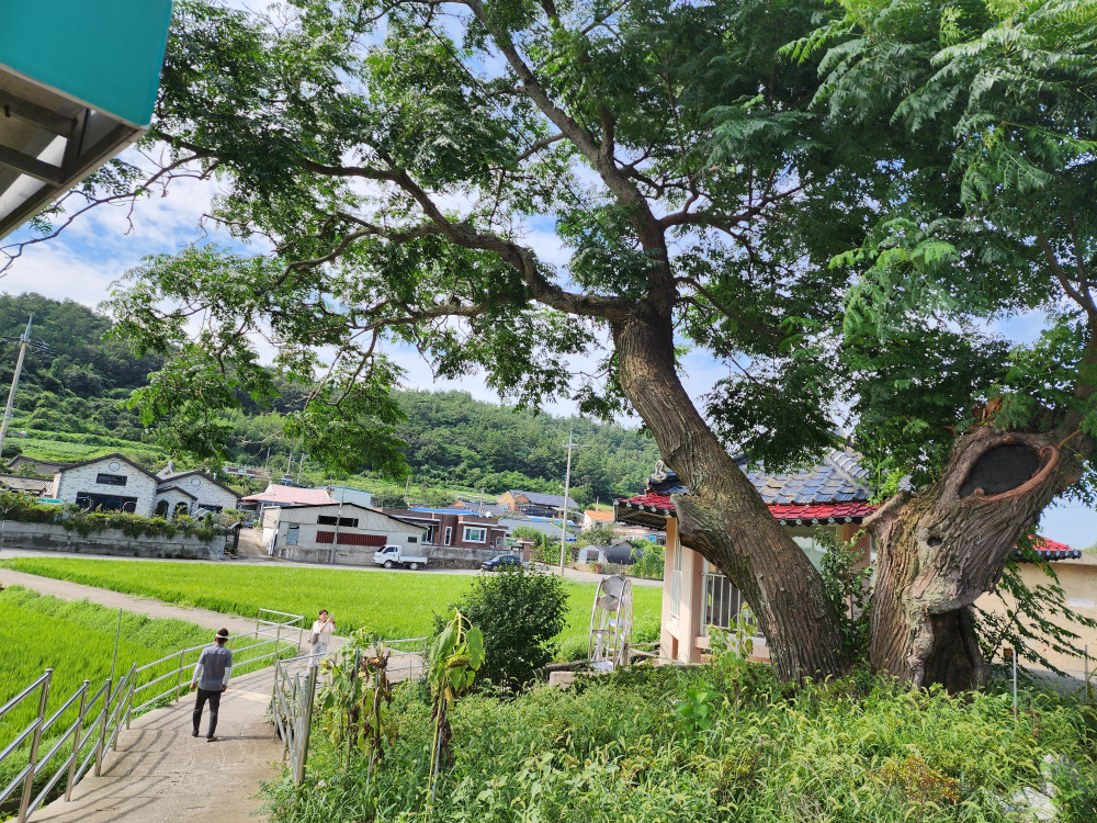 마을 앞에는 둘레가 5미터 20이 넘는 당산나무가 있다. 200여년이 넘었을 것으로 추정되는 이 나무에 주민들은 마을의 안녕과 농사의 풍년을 기원하며 정월 보름에 당산제를 지내기도 하였다. 지금은 사람이 없어 제를 모시지 못하지만 주민들은 다시 당산제를 지냈으면 하는 바람을 가지고 있었다.