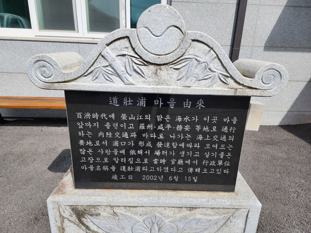 道壯浦란 지명도 조선시대 중기 壯湖(호등 또는 호룡정이라고도 한다)와 道村이 둑으로 연결되면서 지어진 이름이다. 주민들의 말에 따르면 예전에는 이 둑이 있는 것을 보았다고 한다. 그러다 경지정리 바람이 불면서 둑이 없어졌다고 한다.