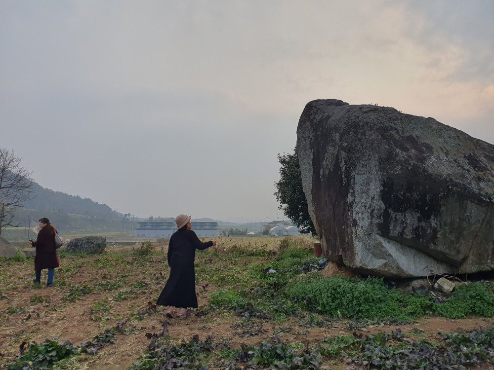 21기의 지석묘가 성터 주변 비닐하우스, 주민의 집 마당,들판 등 여기저기에 흩어져 있다