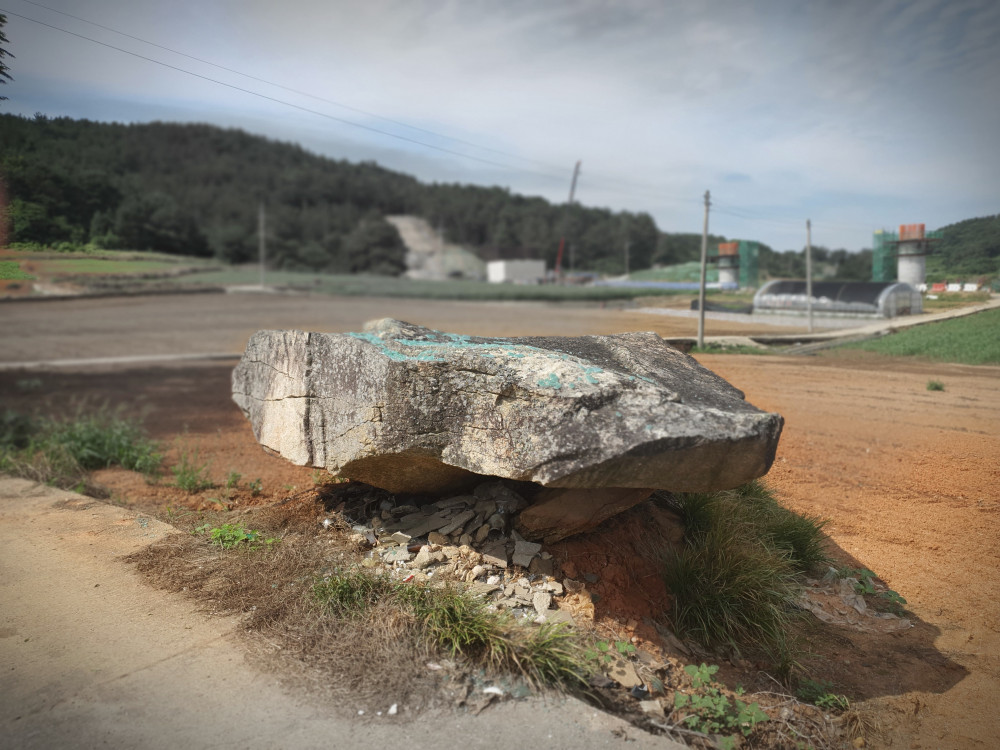 관동마을 앞 김씨 문중 동산에서 11기의 고인돌을 확인했다. 주민들이 ‘동산바우’라고도 부르는 고인돌은 갈마봉에서 동산으로 내려오는 줄기에 많이 있었으나, 밭을 개간하면서 깨거나 가져가 버려 지금은 동산에만 남아 있다. 대체로 고인돌의 원형이 잘 보존되어 있으며 큰 것은 길이가 4미터 50센티가 넘기도 한다. 또한 주변에서 돌칼, 돌도끼 등이 발견되었으며, 고인돌이 있는 이곳을 ‘부섬’이라고도 부른다. 부섬이란 깔따구를 많이 부었다는데서 유래된 말이다.