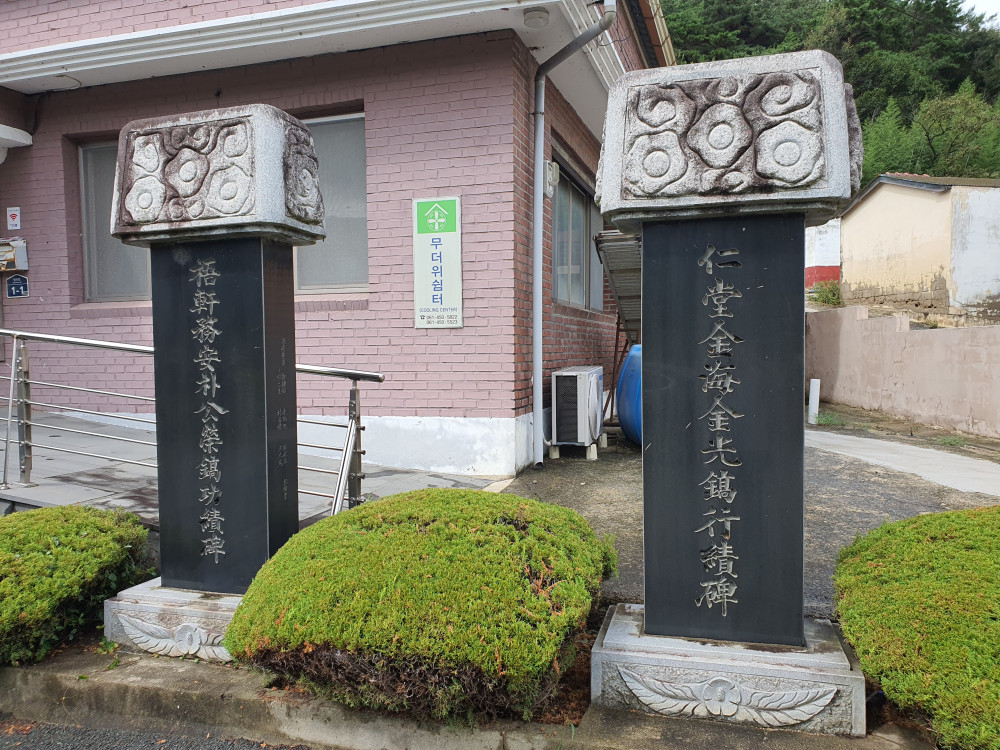 마을회관 앞에는 1994년에 세워진 ‘오헌무안박공영호공적비’와 ‘인당김해김광호행적비’인데 김광호 선생은 현재 마을 개발위원회 김영선 위원장의 부친이다.