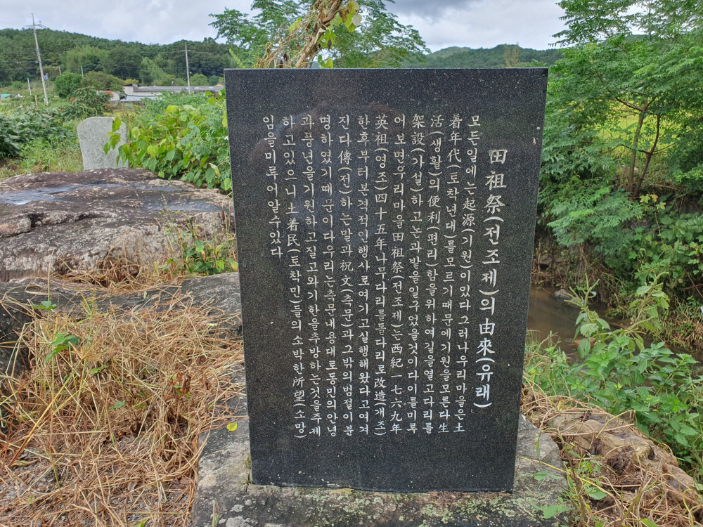 하지만, 이 마을에서는 무엇보다도 지금까지 현존하며 직접 제사를 지내고 있는 ‘전조제’와 ‘이처사제사’가 자랑이다. 매년 유월 유두날에 지내는 전조제(田祖祭)는 무안을 비롯한 다른 지역에서는 거의 보기 힘든 마을제사이다. 농사를 헤치는 멸구 등 병충해 방제와 예전에 승달산에서 시도 때도 없이 흘러내리던 산물과 마을 안에까지 들어와 범람하던 갯물을 건너는 견고한 다리를 놓아 마을의 농사와 안녕을 기원하던 전조제는 여느 마을에서 행하는 당산제와는 확실히 성격이 다르다. 무엇보다도 전조제(田祖祭)라는 명칭에서 보여주듯이, 이 제사는 전답을 관장하는 지신(地神)에게 주민들의 소망을 담아 들판(野)에서 지내는 제사이다.