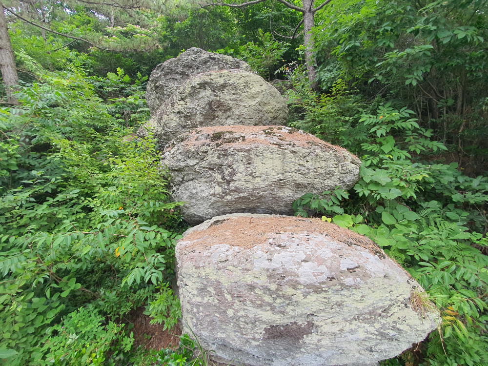 마을의 산 위에 크기가 비슷한 검은 바위 10여 개가 시루떡을 쌓아놓은 펼쳐져 있으며, 마을 뒤편에 얼마 전부터 경작하기 시작한 각종 연방죽이 은은한 향기와 오롯한 자태를 뽐내는 연꽃을 피워내고 있다.