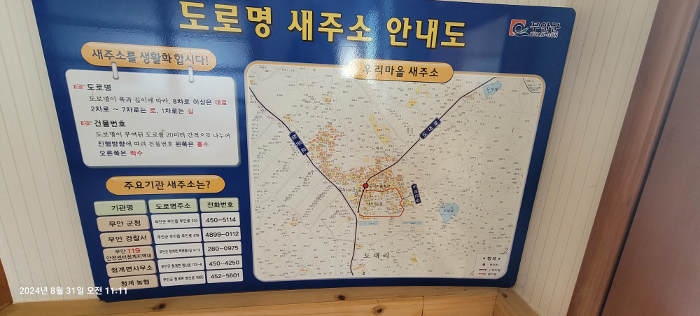 또한, 마을 가운데를 가르고 지나가는 도대길이 주민들을 여전히 불안하게 하고 있다. 이 길을 중심으로 본동네와 중촌이 나뉘어져 주민들이 편하게 다닐 수가 없는 것이다. 한때 군에서 마을을 우회하는 도로를 개설하려고 했다가 지금까지 미뤄지고 있다. 얼마 전에 개설된 청계에서 무안공항으로 이어지는 4차선 도로가 개통되어 인근 도회지로 이어지는 길이 훨씬 수월해졌다.