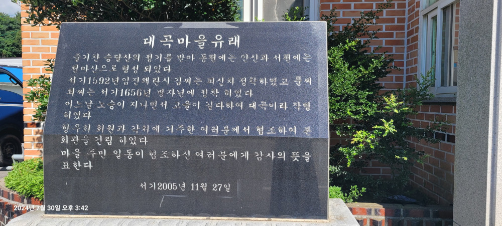 ‘제칠일안식일교회’가 들어서면서 외국인 선교사들이 활동했다. 선교 수단으로 마을에 학교를 지어 아이들을 가르쳤으며 ‘청계중앙초등학교’가 들어서기 전까지 주변 마을의 아동들까지 이곳에서 배웠다. 지금도 주민들은 ‘예배학교’라는 말을 기억하고 있으며 마을 뒤에 ‘학교당’이라는 지명이 마을에 남아 있다. 현재는 ‘대곡교회’가 들어섰다.