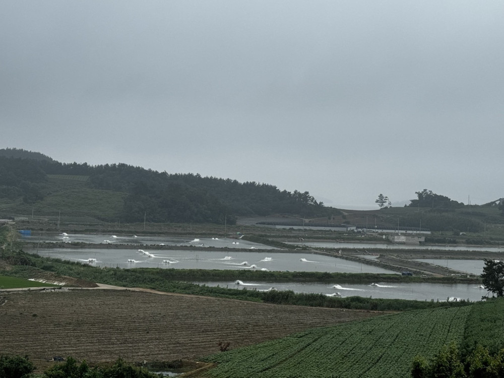 예전에는 염전이었는데, 현재는 새우양식장으로 전환하여 마을 소득이 높아졌다.