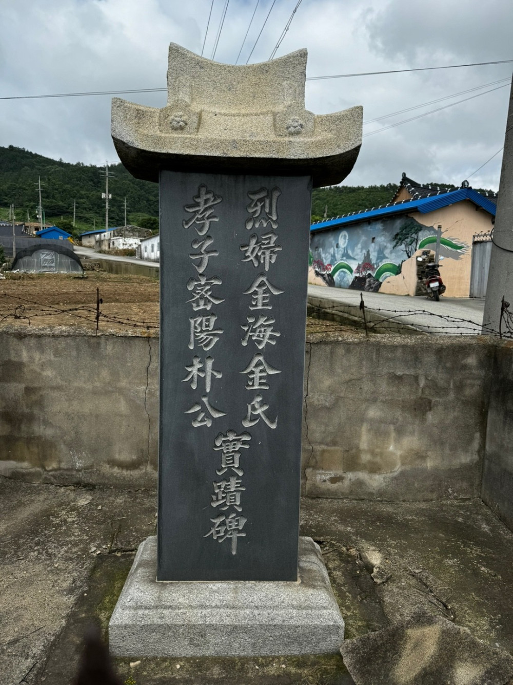또한, 마을 중앙에는 밀양박씨 문중에서 배출한 효자 박준석과 열부 김해김씨를 추모하기 위하여 1977년에 건립한 <효자밀양박공/열부밀양박씨실적비>가 있다.