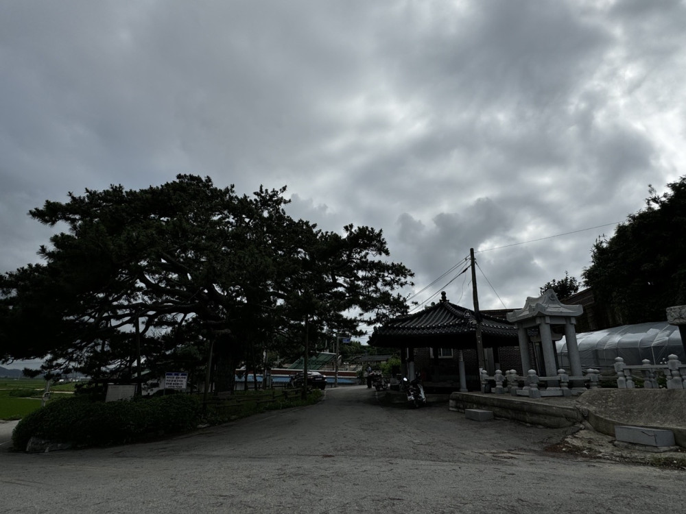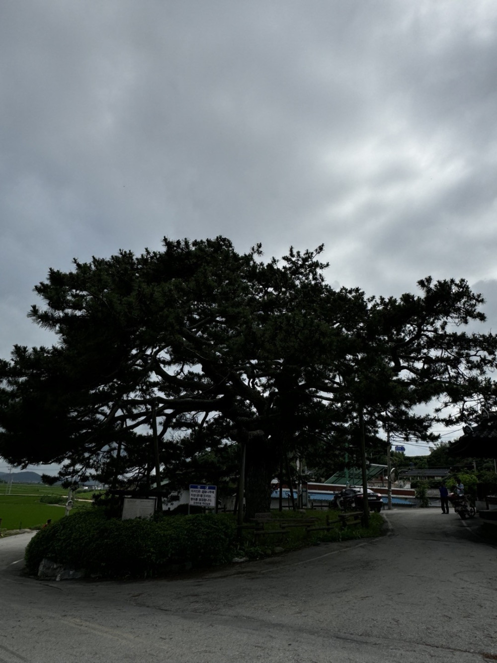 마을 앞에는 전라남도에서 지정한 기념물인 600여 년의 수령을 지닌 당산목인 소나무가 있다. 이 곳은 개어덕으로 부르는 곳인데, 예전에 나무 바로 아래까지 바닷물이 들어왔기 때문이다. 봉대산의 맥을 이어받은 등걸산의 줄기가 마치 용꼬리 모양으로 마을 앞까지 이어졌는데, 꼬리 부분에 해당되는 곳에 이 당산나무가 있는 것이었다. 전해지는 말로는 입향조가 전염병을 예방하고 마을의 안녕을 위해서 심은 나무라고 한다. 수형이 잘 잡혀 있으며 무안의 기념물 중 가장 건강하고 모양이 좋은 나무이다. 주민들은 이 나무를 신목(神木)으로 여기며 정성껏 가꾸고 있다. 오래전에 주민 한 사람이 소의 멍에로 쓰기 위해 이 나뭇가지를 베어서 사용한 일이 있었다. 이후 그 집안에는 원인을 알 수 없는 우환이 계속되었고 그 주민 당사자는 성기에 종기가 나서 3년이나 고생하다 죽었다고 한다. 그 후 마을에도 전염병이 돌아 주민들이 많은 고생을 하였으나, 신목에 정성을 다해 제를 모시면서부터는 마을이 평안하였다고 전한다.