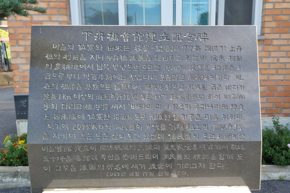 「하주교」마을은 망운면 소재지와 현경면 소재지의 중간에 위치한 마을로 일제강점기 이전까지는 마을 앞이 바다여서 이곳까지 배가 드나들었던 곳이라 하여 「배다리(舟橋)」 또는 「배달」이라고 하였다. 망운면 동쪽의 809번 지방도로 아래쪽으로 있던 포구 내지는 다리를 중심으로 형성된 유서 깊은 자연마을로, 주변의 자연환경과 어우러져 전통적인 삶의 방식과 공동체 문화를 이어오고 있는 마을이다.