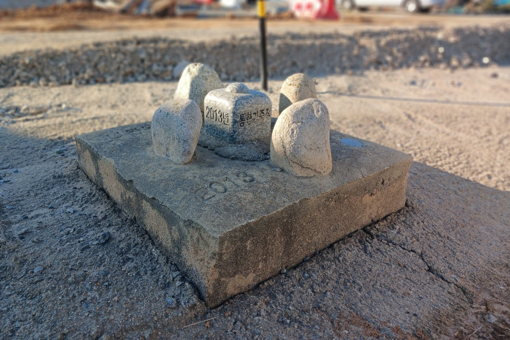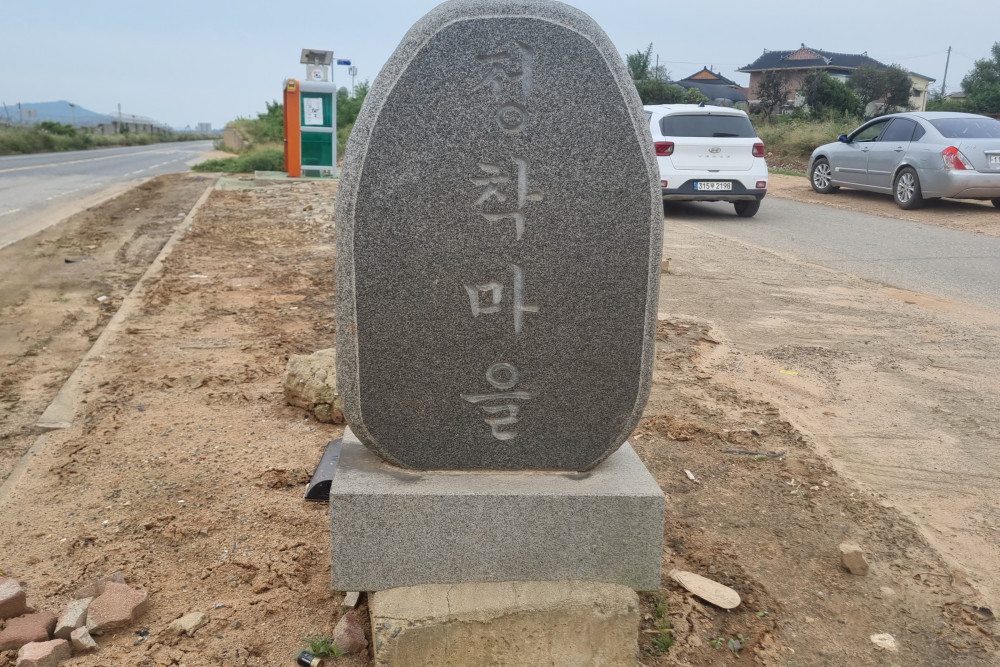 이 마을은 피난민들이 정착(定着)한 마을이다. 그래서 망운에서 마을로 들어오는 입구에는 <마을표지석>(1985)과 옆의 <통일염원석>(세로 길이 1m가량의 자연석에는 ‘우리의 염원’이라는 표제와 더불어 ‘모든 것이 넉넉해도 한 가지 우리의 부족함은 화합의 장, 바로 남북통일입니다’라는 문구가 새겨져 있다), 그리고 <통합기준점 표지석> 등이 있다. 현재 마을 입구는 공항로 4차선 도로 공사 등으로 매우 어수선하다.
