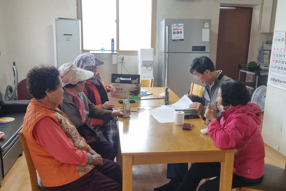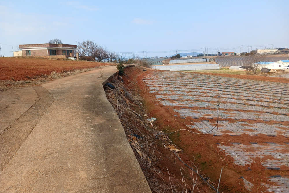 마을의 주민들은 정착 초기에 척박한 환경으로 극심한 어려움을 겪었다. 분배받은 토지는 풀도 자라지 않은 박토(薄土)로 농작물이 잘 자라지 않았다. 처음에는 호밀, 유채, 고구마 등을 심다가 차츰 땅을 기름지게 일궈가며 다른 밭작물을 심었다. 특히 주민들은 갯벌의 펄을 실어다 밭에 뿌려 농사짓던 고단하고 아팠던 기억이 있다. 현재 마을의 주요 작물은 마늘, 양파, 고구마 등이다.