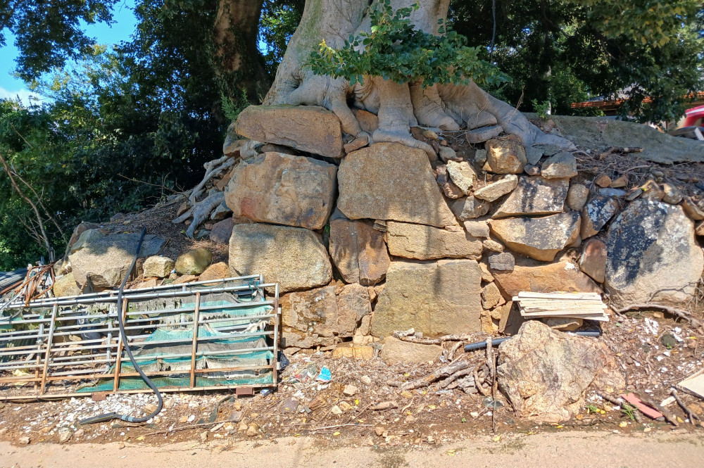 「원성내」마을 입구에 있는 요즈음 보기 드문 당산목인 홰나무(팽나무, 괴목) 두 그루가 마을의 안위를 지켰다 하는데. 지금은 입구 왼쪽에 한 그루의 팽나무가 있으며, 당산제를 지낼 정도의 규모로는 보이지 않는다. 다만 다경포진 성문터 오른쪽에 있는 두 그루 아름드리 당산나무가 있는데, 모두 족히 수 백년은 됨직하며, 이중 한 그루는 연리지를 이루고 있다. 이 나무들은 무안군에서 보호수로 지정하고 있다.