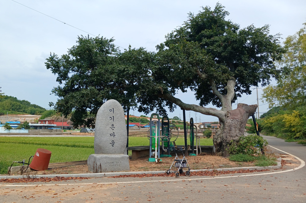 ‘이기촌마을 팽나무’는 마을 입구에 있는 당산나무로 백중날(음력 칠월 보름) 당산제를 지냈다. 이때가 되면 주변의 마을주민 모두가 모였다고 하는데 지금은 제를 지내지 않는다. 농약살포 등 환경오염으로 나무의 줄기가 고사되었고 쇠파이프로 가지를 지탱해 겨우 형체를 보존하고 있다. 무안군 보호수로 지정되어 있다.